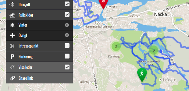 Nu kommer "visa leder" som en efterlängtad funktion i kartvyn. Med den kan du se exakt vart alla leder går i terrängen utan att behöva klicka på varje aktivitet. På så sätt går det att enklare hitta vart turen börjar och det blir enklare att se de olika variationer på turer i samma område.