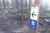 I huvudsak naturstig. Följer längs med hela naturreservatets utkant. Passerar flera utsikter, bland annat "Högsta punkten" och Lärkstugan. Stigen gör även en avstickare till Kolarkojan.Samtliga leder börjar vid Lugnets spårcentral, på skidstadion.