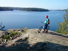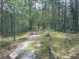 Rundan kan cyklas medsols för att få de finare partierna nerför. Cykla därför ner mot mälaren från parkeringen, följ blå romber. Ibland är det glest märkt så var vaksam. De första kilometrarna är på fina och bitvis krävande stigar upp och ner i granskog och på hällar. Efter det är man uppvärmd!