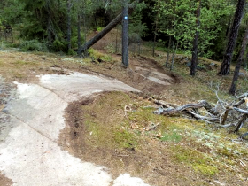 Fornstigen har även många små avstickare i en annan rombform och -färg, om man inte är intresserad av fornlämningar och överväxta stigar så undvik dessa och fortsätt på huvudleden.