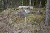 Här har du möjligheten att korta av turen och ta vägen norrut. Om du fortsätter hela turen viker vi av Knivstigen vid den väg som tar dig upp till där Dalkarlsstigen tar dig tillbaka till Staberg igen.