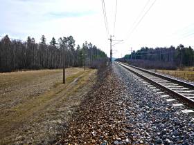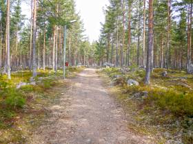 Svagt kuperat spår som börjar nere på stadion och tar dig längs med järnvägsspåret upp mot en riktigt fin tallhed.