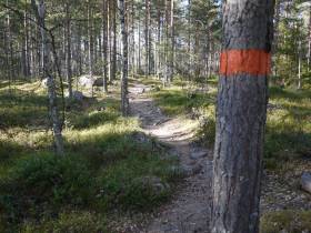 Starta vid Lugnet spårcentral och börja att gå förbi dammen mot Jungfruberget. Turen är lättgådd men har en hel del rötter och stenar under hela turen på den del som går på stigar. Vid turens högsta punkt erbjuds en fin utsikt över sjön Varpan.