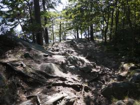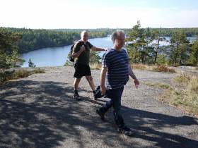 Den första biten efter badplatsen samsas Källtorpssjön runt med leden Solsidan grön 10km och dess stenar, hällar och branter. Här är det bitvis riktigt brant.