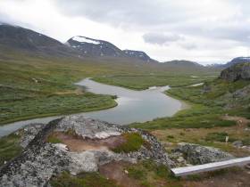 Det här är kanske fjällvandring när den är som allra bästa %u2013 frodig, lättvandrad och fågelrik fjällhed omgiven av resliga fjäll och glaciärer. Mäktigt och rikt på stora och små upplevelser.