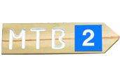 Såhär ser skyltarna ut som du kommer att följa. Färgen anger ledens svårighetgrad. Siffran talar om vilken led du cyklar efter.