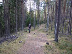 Kort och ganska backig led som till största del följer Lilla mörksuggejaktens bansträckning. Början och slutet går på bred väg men bjuder också på riktigt rolig singletrack på tallhed. Underlaget är riktigt fint men endast ett försumbart antal rötter.
