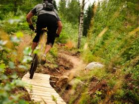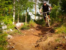 Den blå leden är en lättcyklad led och passar perfekt för lite äldre barn och dig som är ny på mtb. Lättcyklad är dock inte samma sak som tråkig! Leden passerar flera specialbyggda sektioner med doserade kurvor, hopp och härligt flyt! Längs leden finns även teknikträningssektioner för de som vill öva upp sin teknik. Halvvägs runt leden passerar man Sjulsarvsstugan med grillplats, dricksvatten och en fantastisk utsikt över Falun %u2013 perfekt för en skön vilopaus!