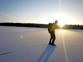 Fint tur på södra delen på sjön Nälden. Södra delen lägger sig relativt tidigt då den är skyddad av vikar.