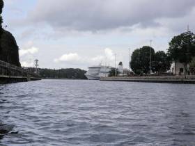Här gäller det att vara alert och hålla ihop som paddlare då de stora kryssningsfartygen passerar här. Ta sikte på beckholmen som ligger rakt föröver och gå mellan den och djurgården för att hålla dig i lugnare vatten och finare miljöer. Du befinner dig nu också i Stockholms Sjögård (se länk).