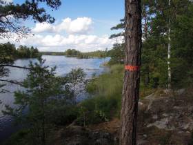 Etappen går genom ett större sammanhängande, myr- och sjörikt gran- och lövskogsområde med talrika tallhedsbevuxna hällmarksområden likt öar i ett skärgårdslandskap.