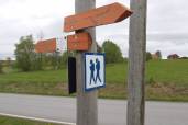 Vandringen över Rödöbron blev spännande då vinbyarna fick oss att ta ofrivilliga snedsteg. Här finns inte heller någon väggren varför det känns än mer otäckt. Väl över på andra sidan viker leden av direkt till vänster ochslingrar sig på grus/gräsväg längs Storsjönsstrand för att sedan komma högre upp genom byn Undrom och vidare fram till Rödöns kyrka.