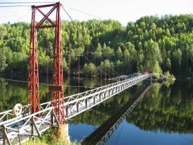 Från Fränsta följer vi leden nerpå Torpsjön coh vandrar längs Kärleksstigen som bjuder på riktigt fin vandring. Vyn över Vikbron, Sveriges längsta träbro, avslutar stigen och vandringen går vidare höger, upp på asfalt. Vi vandrar genom byn Gullgård som ger ett intryck som gör att man vill flytta dit direkt. Som en sagobok.
