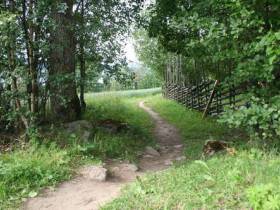 Vi närmar oss övre Bleckåsen och framme vid Millestgård kommer ägarinnan och hälsar på oss då leden korsar hennes tomt. Trevligt bemötande och vi känner att denna delsträcka är till sin ände, just här.