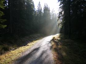 Följer elljusspåret och 5 km-spåret och fortsätter sedan på grusvägar vidare ut i naturreservatet.