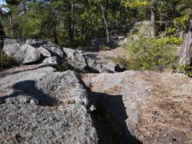 En skön promenad genom härliga skogar och Erstaviksområdet. Bitvis med rötter, stenar och hällar.