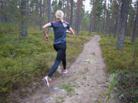 Den blåa stigen från Stångtjänen är en väldigt naturskön stig som går igenom gles tallskog. Stigen startar vid Stångtjärnsstugan som är Falu IK:s klubbstuga. Stigen är till mesta del torr och fin singletrack med långa partier av rötter och sten. Rundan kan med fördel även cyklas då den inte har så många riktigt branta partier.