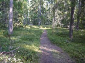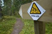 Den kuperade terrängen gör att du måste växla och parera ofta. Spåret korsar motionsspår i området, det är viktigt att du tar hänsyn till andra som promenerar och joggar.