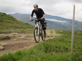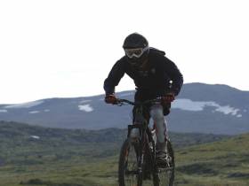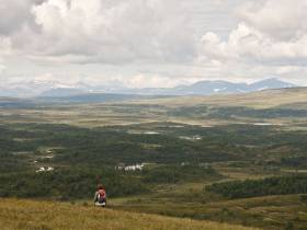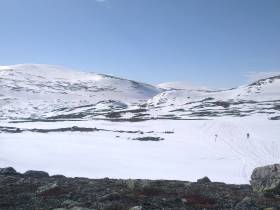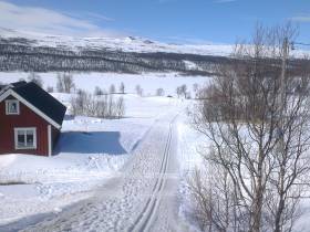Fortsätt på samma skoterled som har tagit dig hit upp i dalen tills du kommer till nödstugan som ligger på den plats du kommer att visa av leden och upp på den sista åsen upp mot toppen.