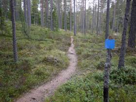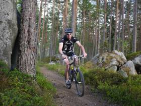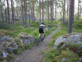 Ren och skär cykelpropaganda i närheten av Falun. Enligt sägnen handbyggdes stigen av en man som bodde vid Rogsjön och jobbade i Grycksbo och har rensats av stenar och har nu doserade kurvor i nästan alla svängar.
