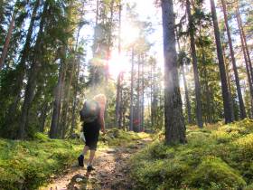 Stigen är 3,4 km lång och går svagt nerför hela vägen innan du kommer fram vid sjön Rogen.