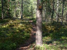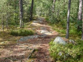 En stig i Grimsta naturreservat som har allt. Hällar, tekniska partier och branta backar. Riktigt torr och fin stig.